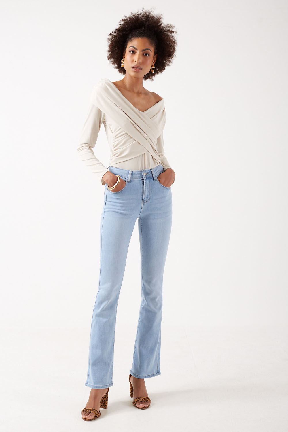 Extra comfortable, the Kim push-up jeans provide a shaping effect for the most elegant silhouette. It features a high waist and bootcut leg, a design that never goes out of style.