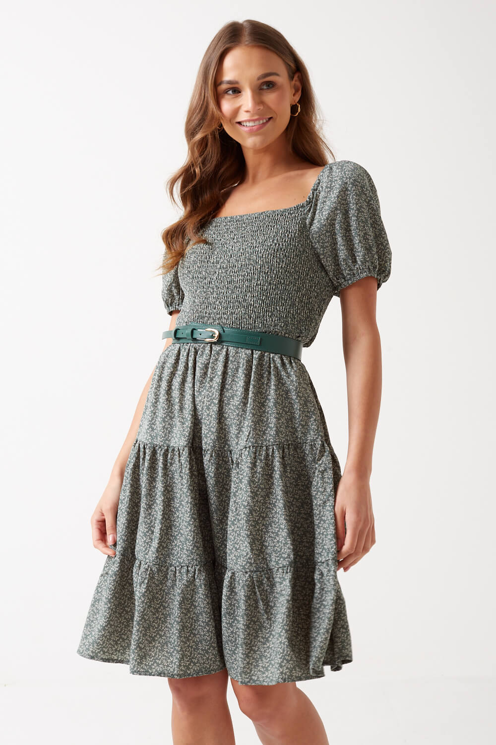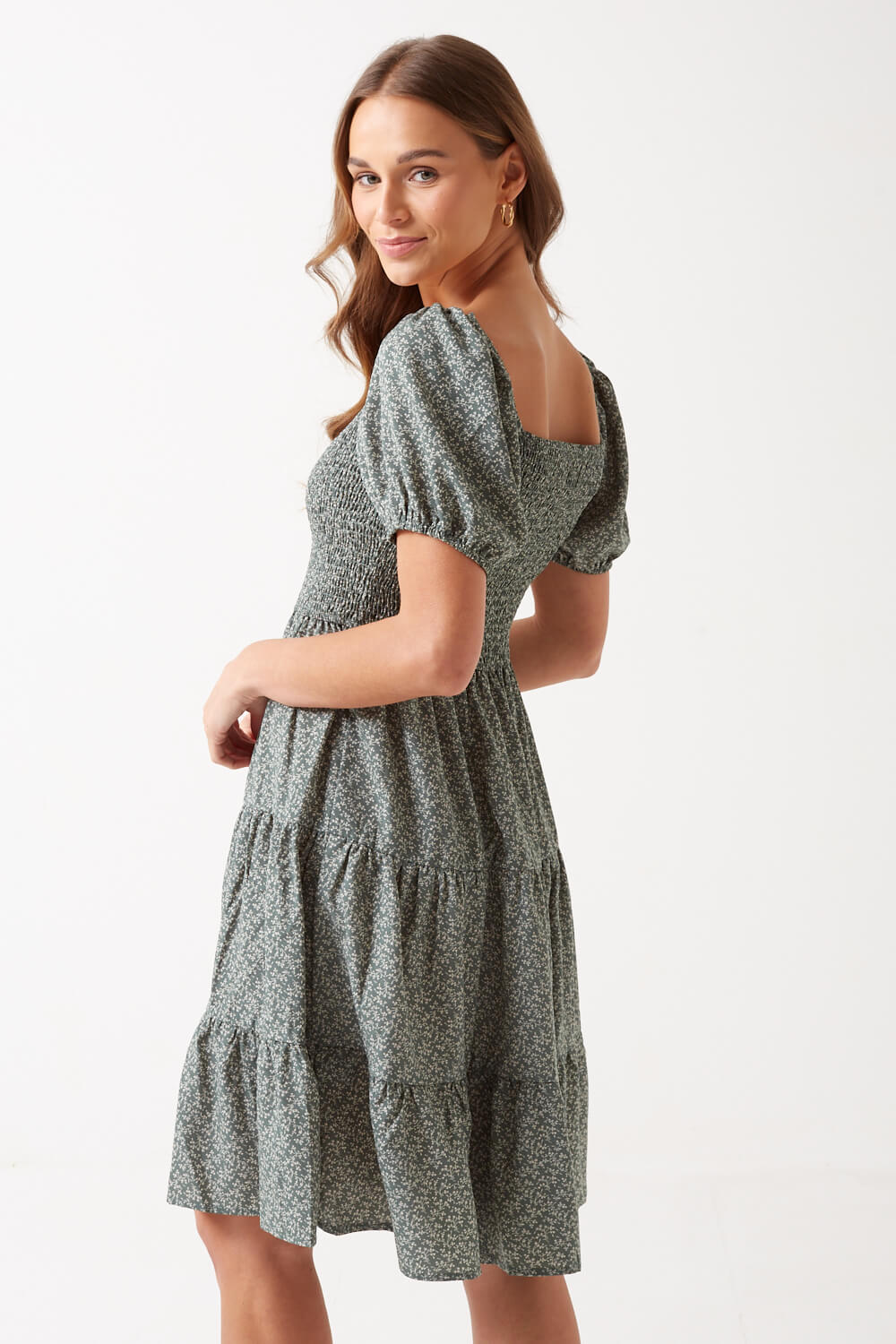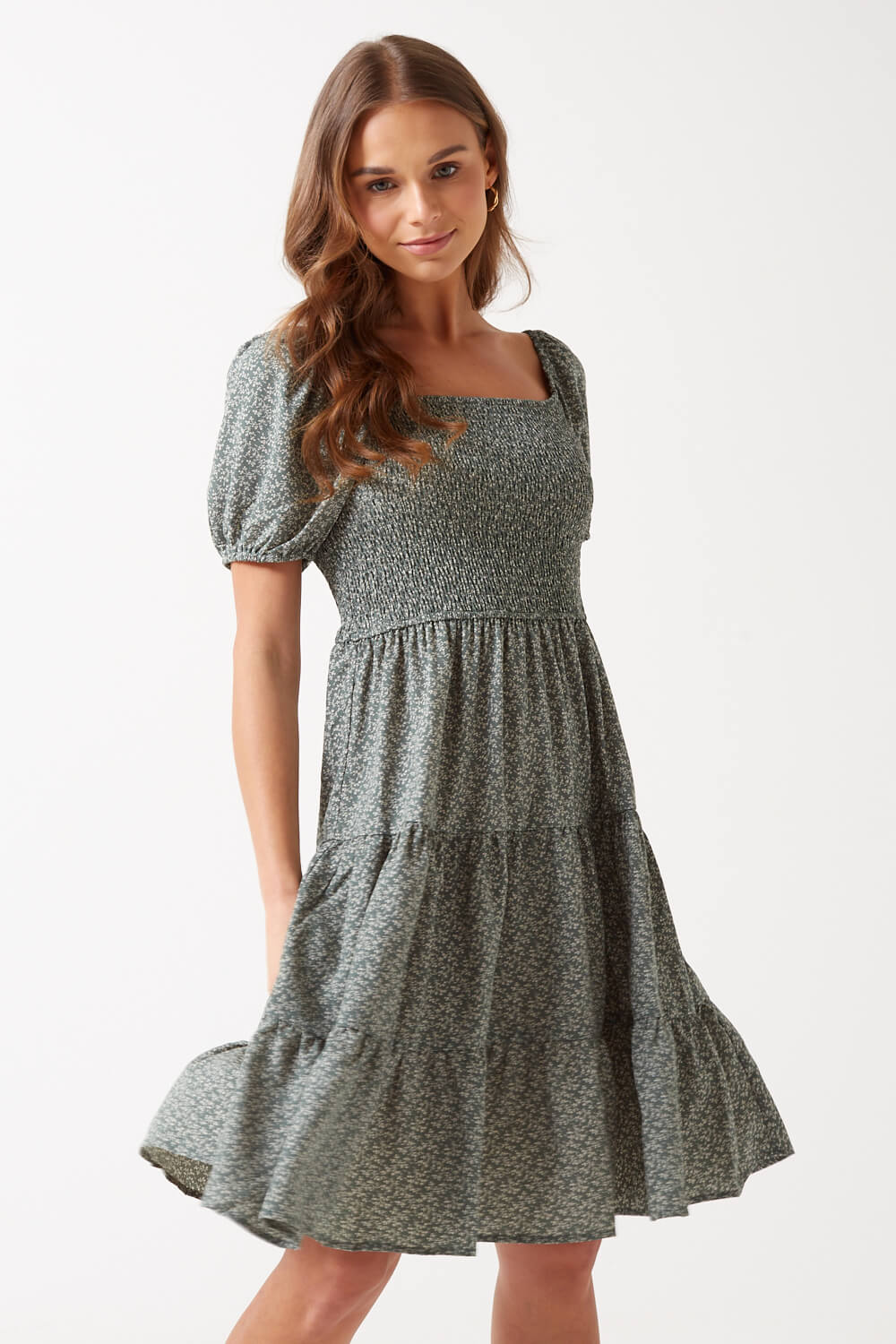 New in from Stella is this floral smock dress. Featuring puff sleeves and shirred bodice, team with sandals and a denim jacket for a cute and comfortable day outfit.