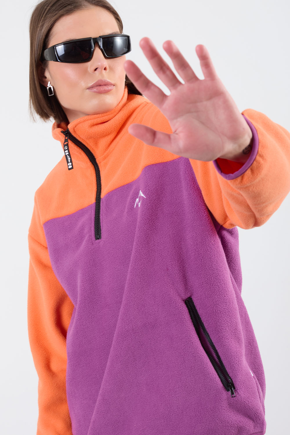 Leah Contrast Half Zip Fleece in Orange Purple
