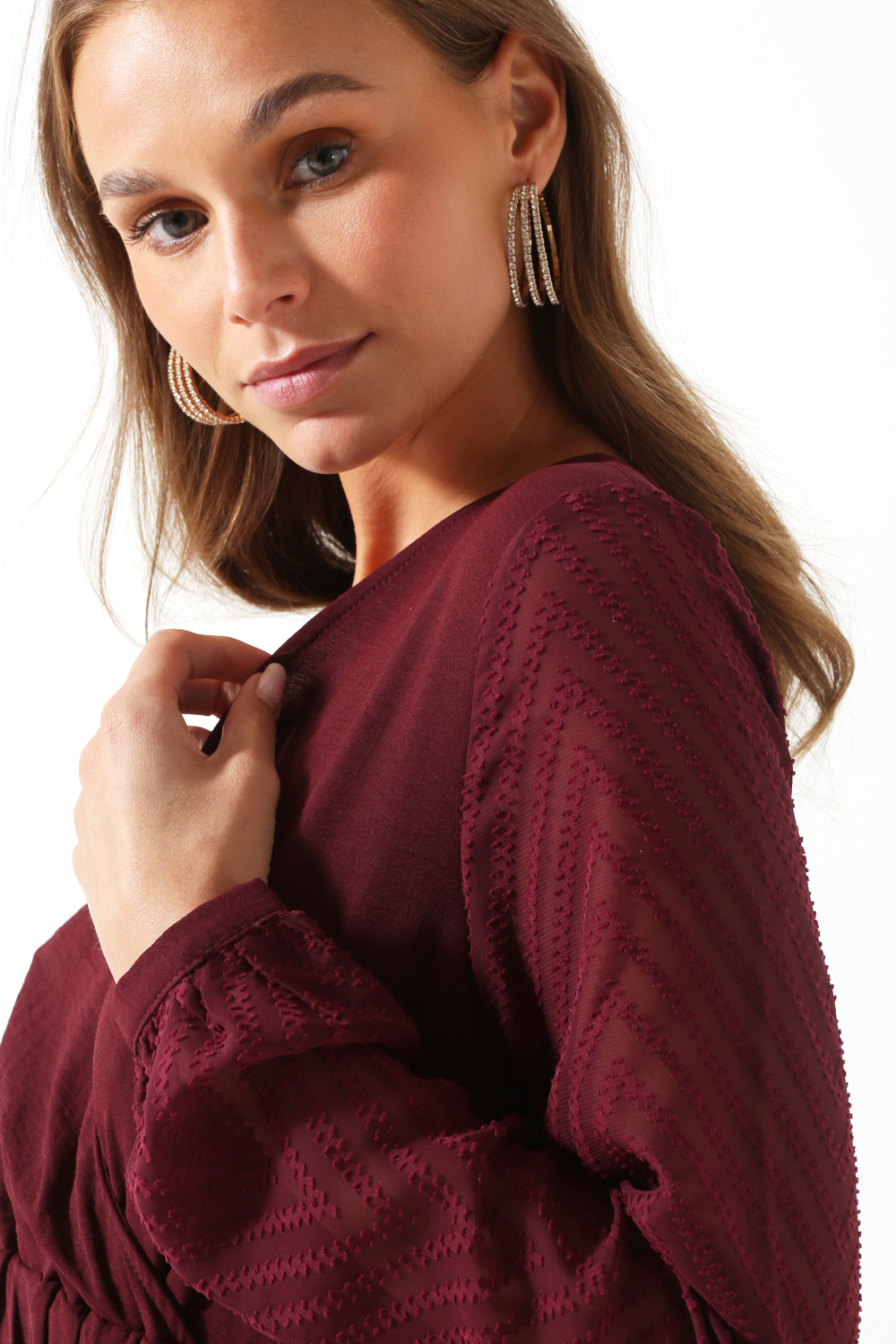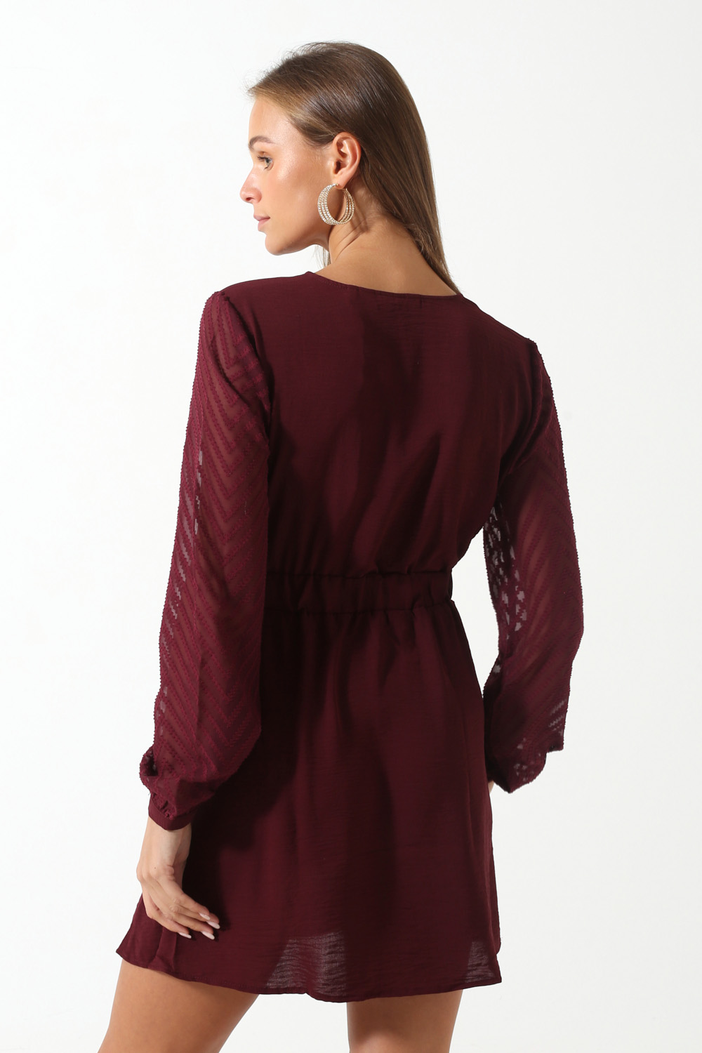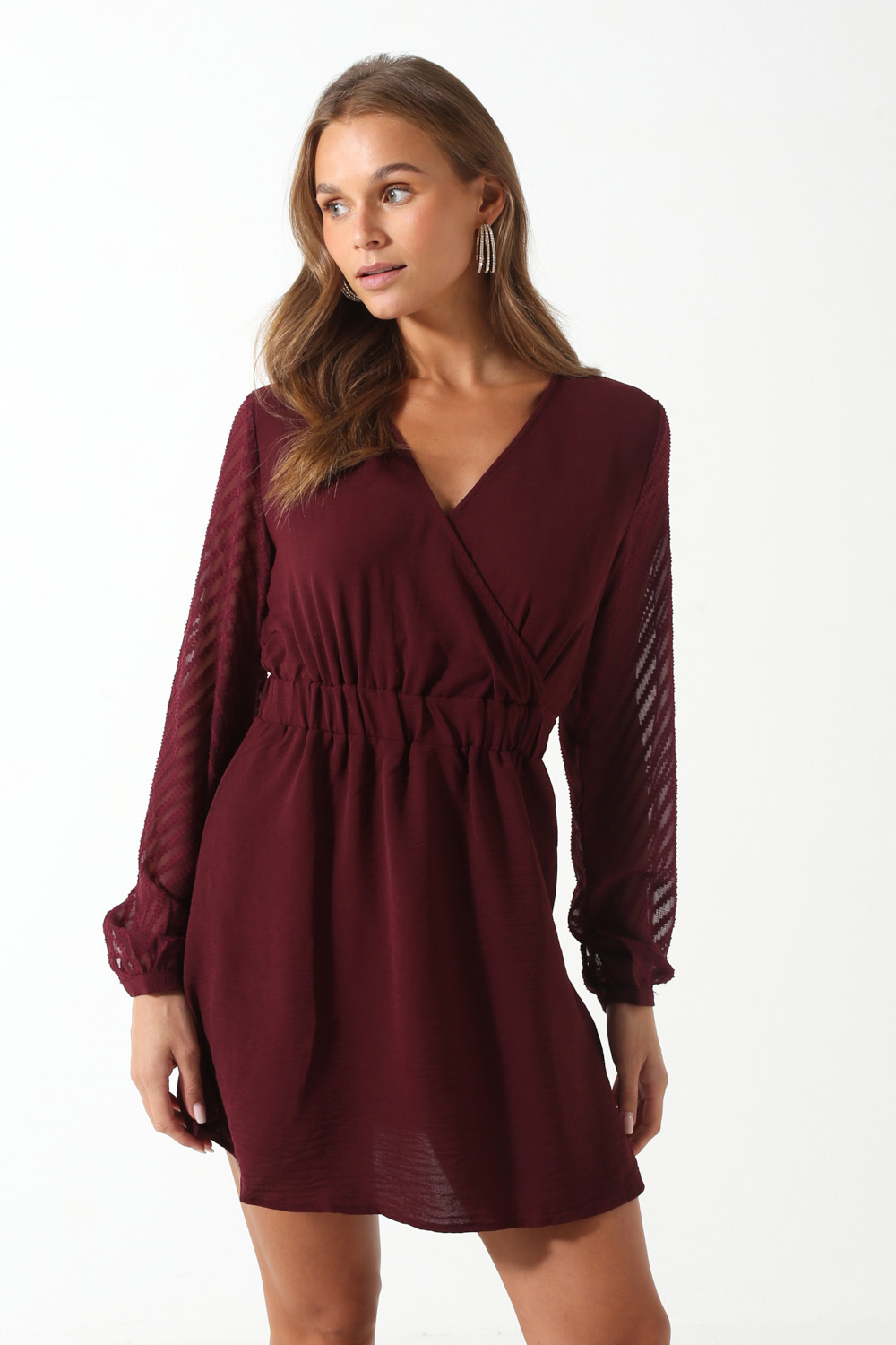 A cute short dress, the Lisa style gains a delicate touch with its see-through cuffed sleeves and its skater skirt. Style it with Western Boots and a long cardigan for a boho-like outfit.