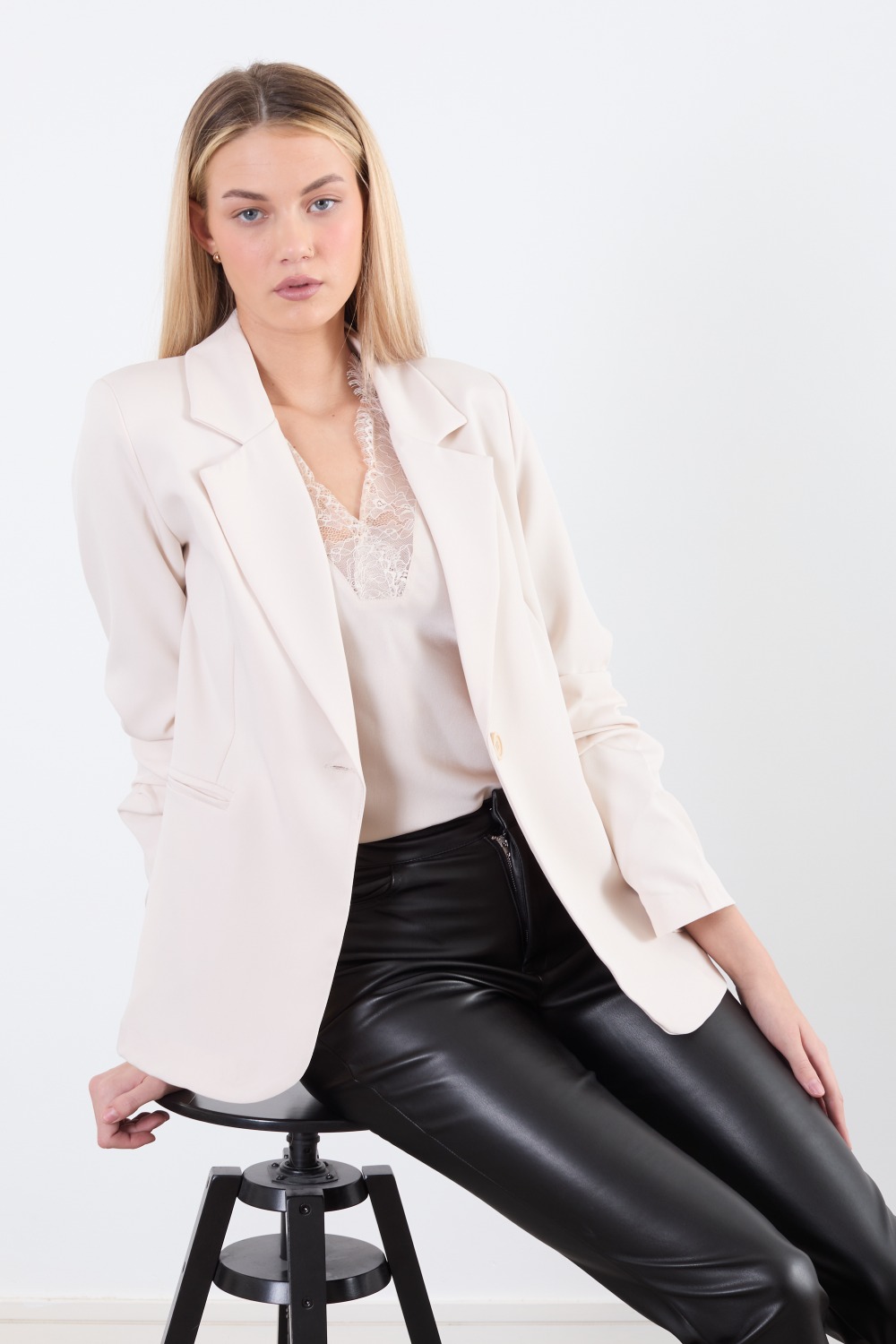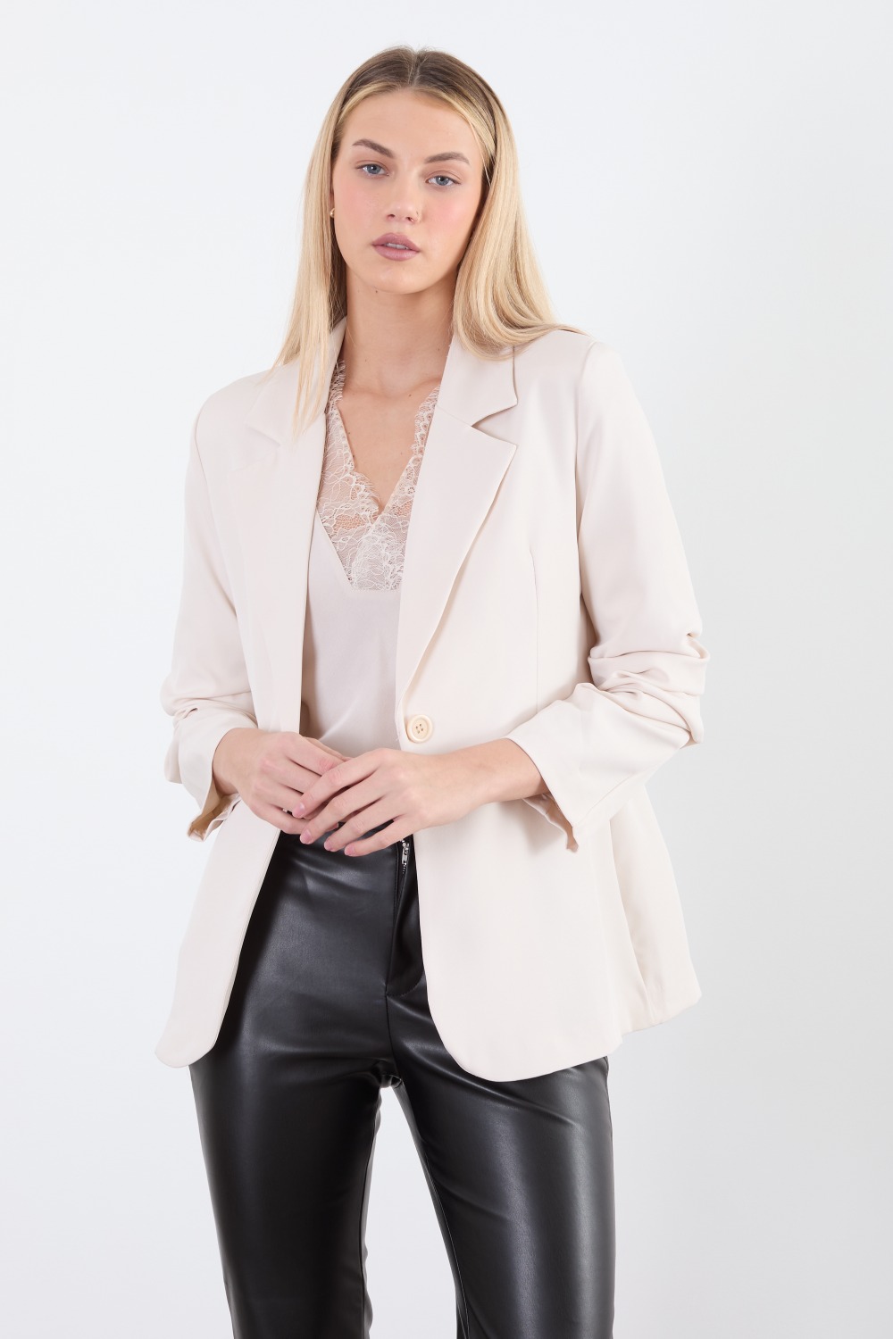 Elevate your wardrobe with the Mckayla Blazer in Beige, a timeless piece that effortlessly combines sophistication and style. Loved for its versatile design, this blazer is perfect for both the office and casual outings, making it a must-have addition for fashion-forward individuals. Crafted from high-quality materials, the Mckayla Blazer features a sleek silhouette that flatters all body types. Available in sizes S, M, L, and XL, it offers a comfortable fit for everyone. The elegant beige color makes it easy to pair with any outfit, while the tailored design adds a touch of refinement to your look. Upgrade your outerwear collection with this essential piece that balances elegance and practicality flawlessly.