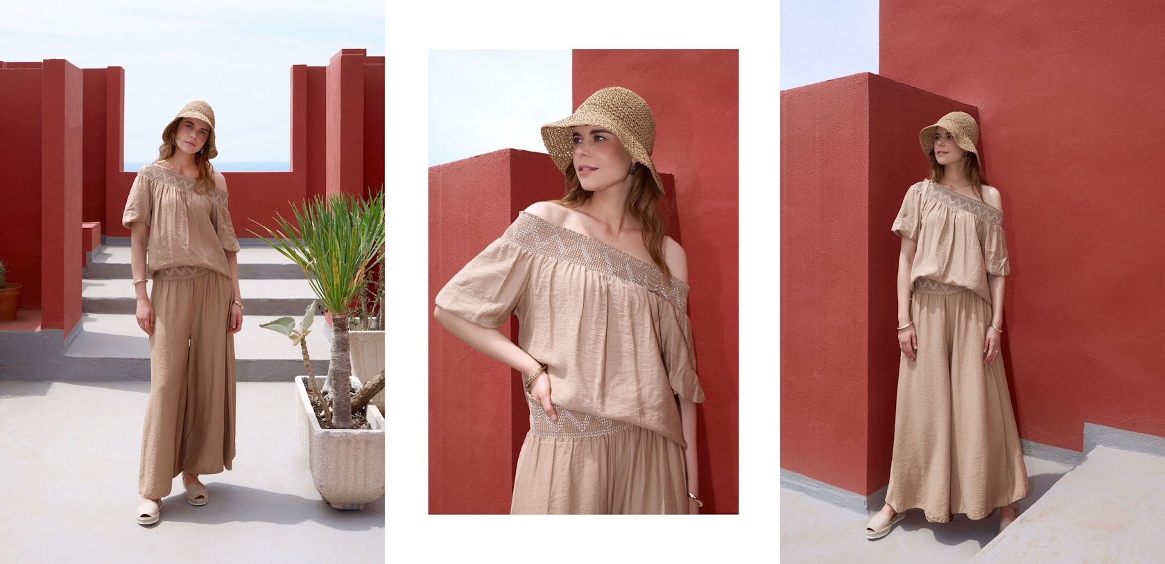 Carmelia Elasticated Wide Leg Trousers in Tan