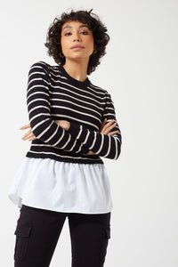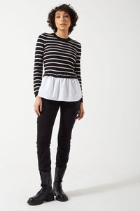 Featuring a playful twist, the Angie knit jumper combines the casual aesthetic of a striped pullover with the classic style of a cotton shirt in its deep hem. Style it with trousers, leather or jeans and loafers for a modern office-style.