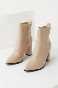 Blair Faux Leather Heeled Ankle Boots in Beige