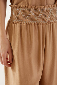 Carmelia Elasticated Wide Leg Trousers in Tan