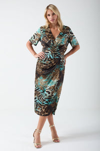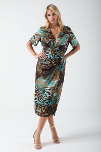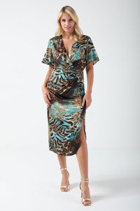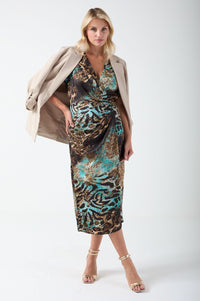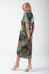 New in from Marc Angelo is the Cleo animal print dress, featuring a waist tie and frill cuffs. Pair with our blair heeled ankle boots for a stylish daytime look.