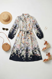 Embrace effortless elegance with the Stella Floral Print Midi Shirt Dress. This chic midi features a vibrant all-over floral print, a classic shirt collar, and a self-tie belt, perfect for styling your sophisticated look.
