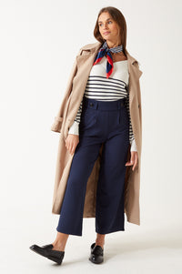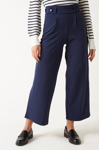 Combining both style and function, these trousers will see you through the office and beyond. Featuring a wide leg design, button waist detail and classic pockets. Wear with a tucked in shirt and court heels or works equally well with slogan t-shirts and trainers.