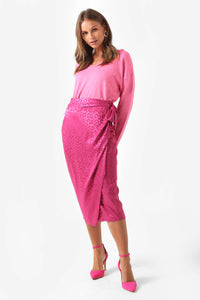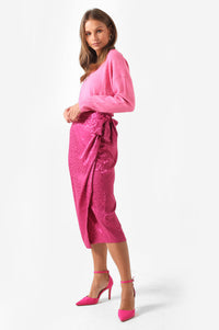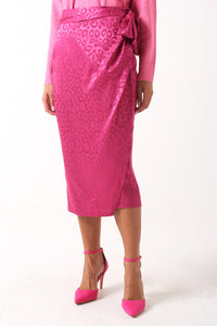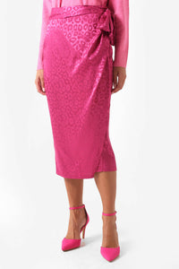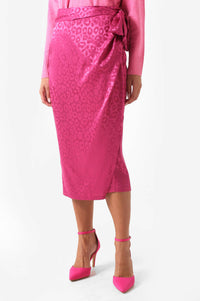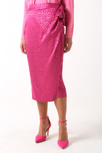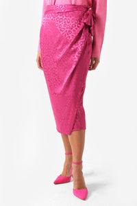 Jaxon Leopard Print Wrap Skirt in Magenta