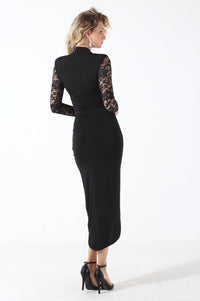 Kim Deep V Lace Sleeve Midi Dress in Black