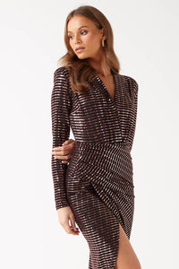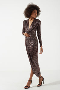 Kim Sequin Midi Dress in Bronze