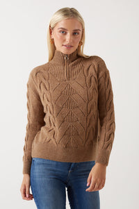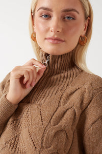 Leise Zip Highneck Knit Jumper in Taupe