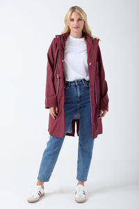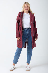 A raincoat is a necessity for the changeable Spring days. This long-line raincoat features contrast striped lining, press stud fastening and practical side pockets. A functional jacket to wear over your everyday basics.