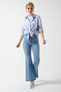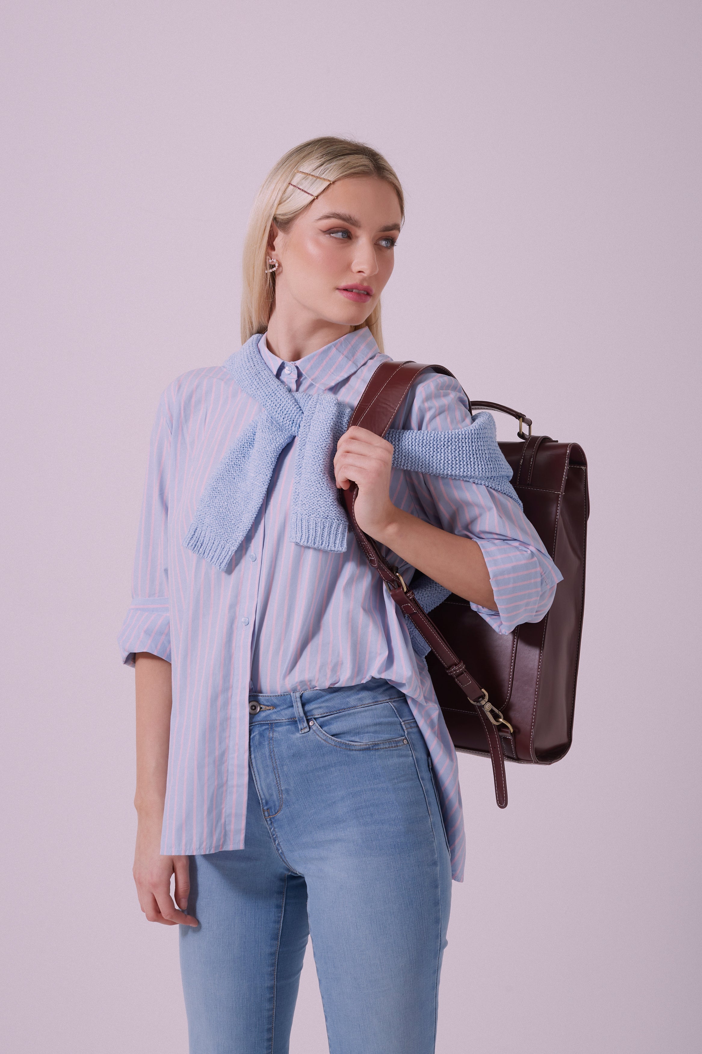 Nelly L/S Loose Striped Shirt in Blue and Pink