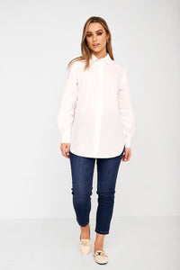 A classic white shirt is a classic piece for your daytime separates. This long sleeve cotton shirt looks great with trousers or tucked into skirts.