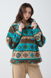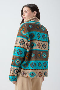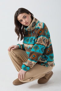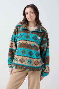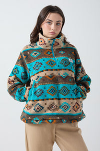 Polly Half Zip Printed Fleece in Aqua Aztec
