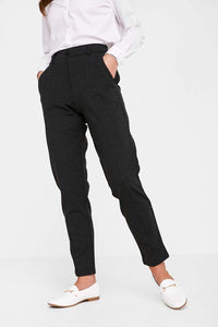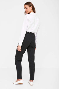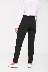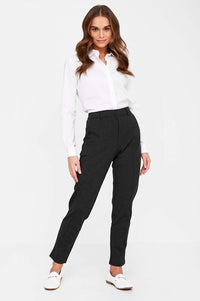 These dark grey straight leg trousers are perfect for your non denim days. Featuring a high rise fit, elasticated waist and extra stretch for ultimate comfort. An easy to wear piece with t-shirts, shirts and blazers.