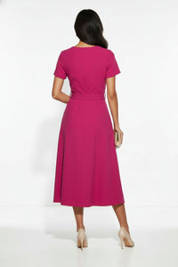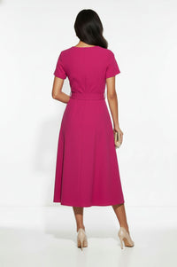 Short-Sleeve Belted Midi Dress in Magenta